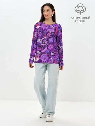 Лонгслив женский. Хлопок / фиолетовый этнический дудлинг