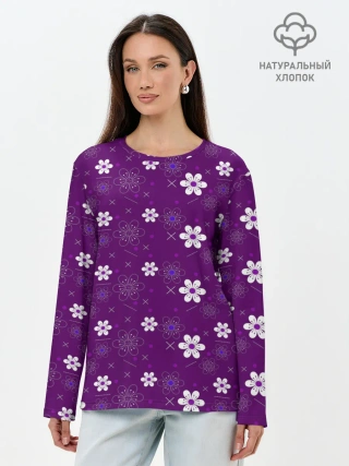 Леггинсы для девочки / узор цветы на фиолетовом фоне