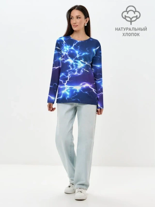 Лонгслив женский. Хлопок / СВЕТЯЩИЕСЯ МОЛНИИ | NEON FLASH