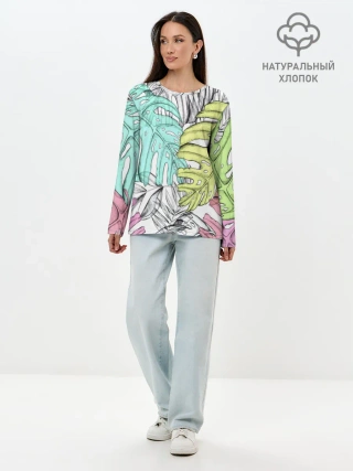 Лонгслив женский. Хлопок / ТЕКСТУРА ТРОПИКИ