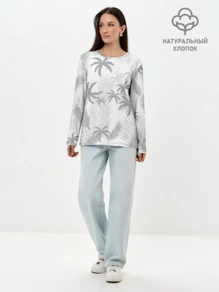 Лонгслив женский. Хлопок / ПАЛЬМЫ | ЛЕТО | TROPICAL