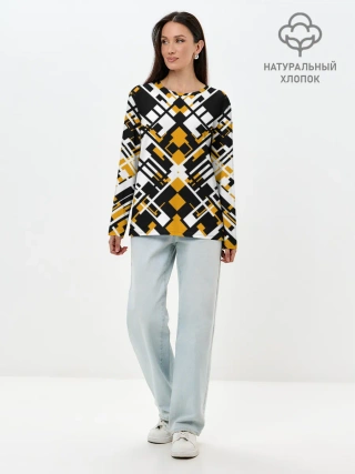 Лонгслив женский. Хлопок / КИБЕРПАНК,ФАНТАСТИКА,ГЕОМЕТРИЯ