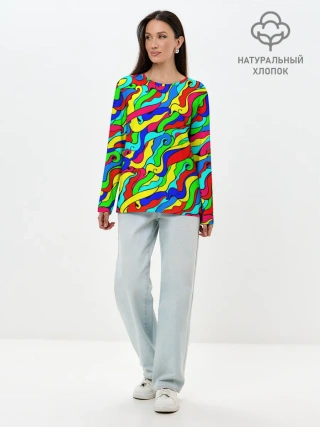 Лонгслив женский. Хлопок / Красочные узоры/абстракционизм