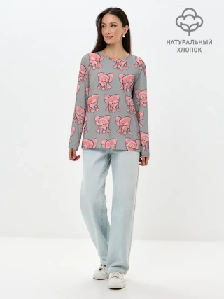 Лонгслив женский. Хлопок / РОЗОВЫЕ СЛОНИКИ ПАТТЕРН