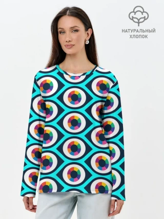 Лонгслив женский. Хлопок / Глаза паттерн
