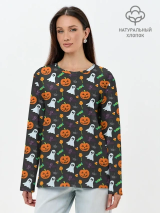 Лонгслив женский. Хлопок / Праздничный хэллоуин