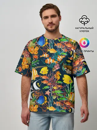 Мужская футболка оверсайз / Морской мир