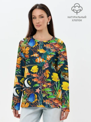 Лонгслив женский. Хлопок / Морской мир