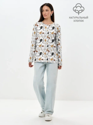 Лонгслив женский. Хлопок / КОТИКИ