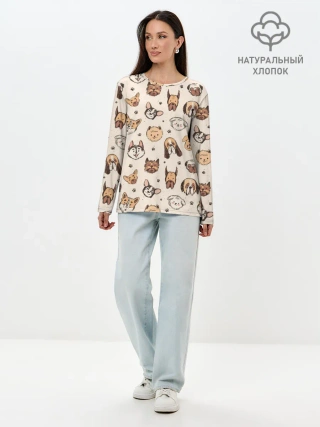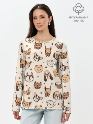 Лонгслив женский. Хлопок / Хипстерские собачки