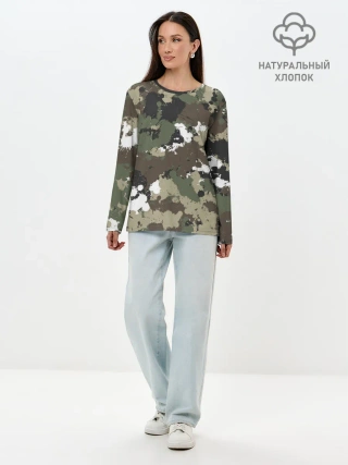 Лонгслив женский. Хлопок / Камуфляж с кляксами