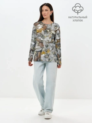 Лонгслив женский. Хлопок / желто-серый каменный узор