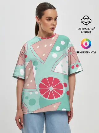 Женская футболка оверсайз / Арбузно-цитрусовый узор