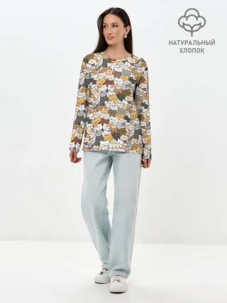 Лонгслив женский. Хлопок / Котики муркотики