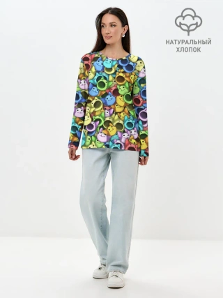 Лонгслив женский. Хлопок / Цветные Поп Котики