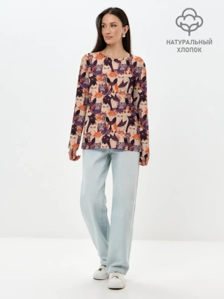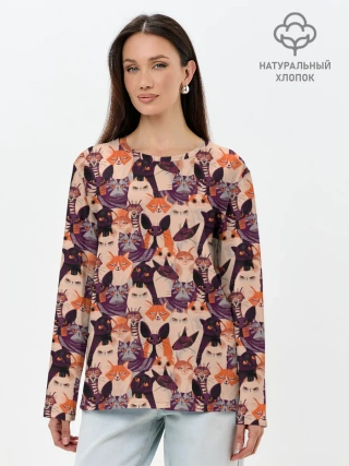 Лонгслив женский. Хлопок / Мемные Коты Паттерн