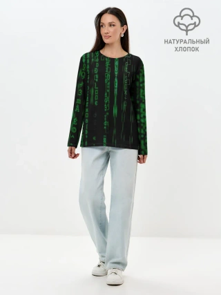Лонгслив женский. Хлопок / Матрица букв и чисел