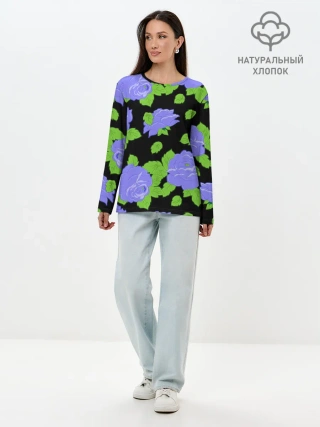 Лонгслив женский. Хлопок / Синие розы