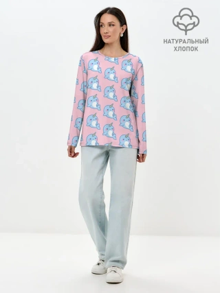 Лонгслив женский. Хлопок / Дельфинчики | Единорожки