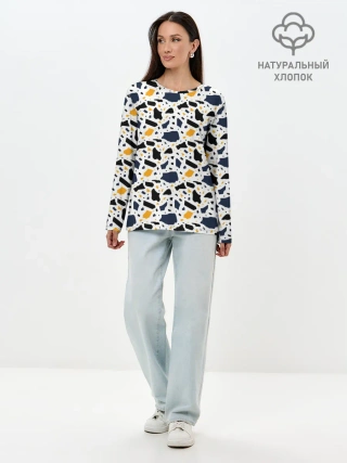 Лонгслив женский. Хлопок / Итальянский Узор Терраццо