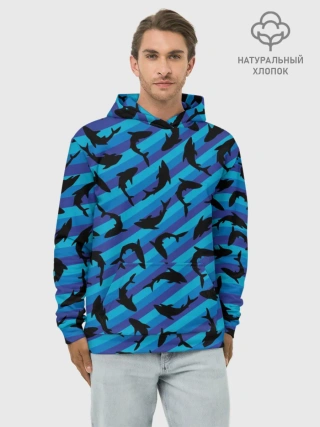 Худи мужской база хлопок / Черные акулы паттерн