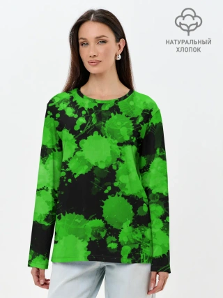 Лонгслив женский. Хлопок / Зеленые Кляксы