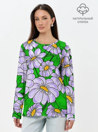 Лонгслив женский. Хлопок / Цветы Лавандовые ромашки
