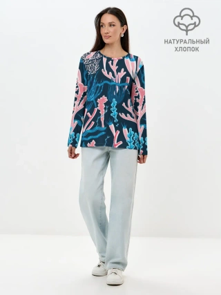 Лонгслив женский. Хлопок / Подводный мир