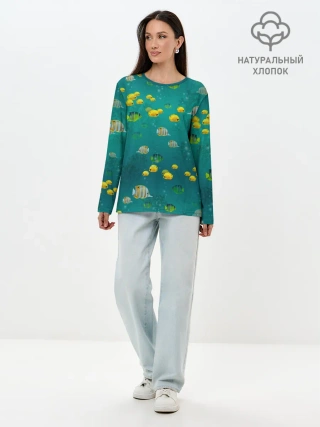 Лонгслив женский. Хлопок / Подводный мир. Рыбки