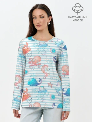 Лонгслив женский. Хлопок / Морские жители