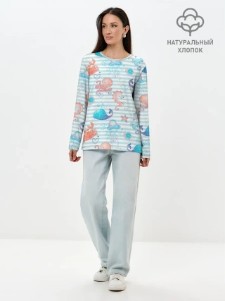 Лонгслив женский. Хлопок / Морские жители