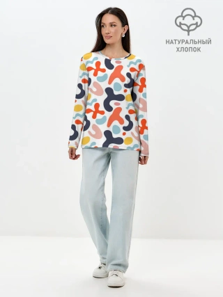 Лонгслив женский. Хлопок / Абстрактные цветные пятна