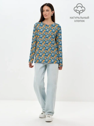 Лонгслив женский. Хлопок / АПЕЛЬСИННЫЙ ПАТТЕРН | ФРУКТЫ