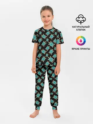 Детская пижама с брюками / Бирюзовые черепашки брошка