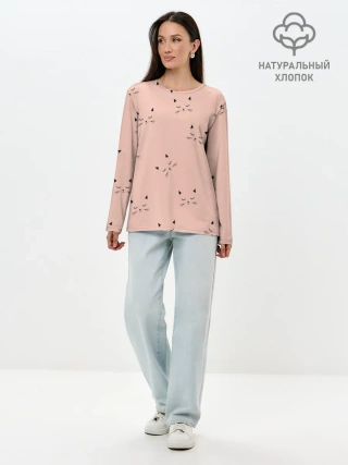 Лонгслив женский. Хлопок / Киски