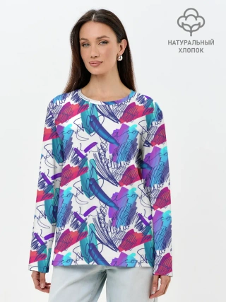 Лонгслив женский. Хлопок / Абстракция пятна краски