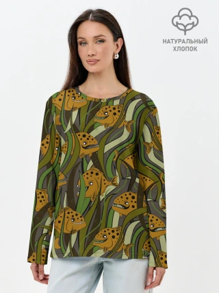Лонгслив женский. Хлопок / Пираньи камуфляж