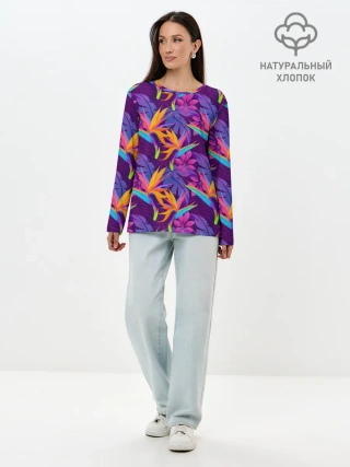 Лонгслив женский. Хлопок / Тропические листья