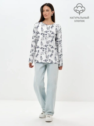 Лонгслив женский. Хлопок / Скетч сказочные птицы