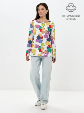 Лонгслив женский. Хлопок / Ретро узор-заплатки.