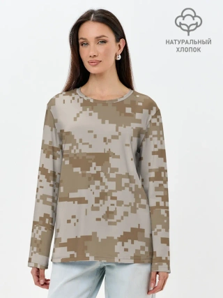 Лонгслив женский. Хлопок / Камуфляжный пиксель