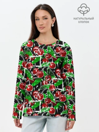 Лонгслив женский. Хлопок / Абстрактный узор спелая вишня