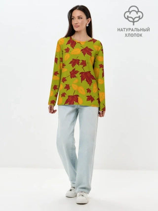 Лонгслив женский. Хлопок / осенние листья клён и дуб