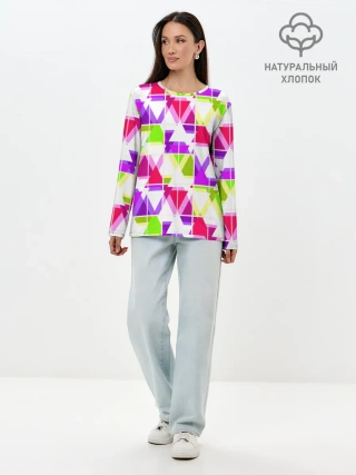 Лонгслив женский. Хлопок / Абстрактный яркий узор