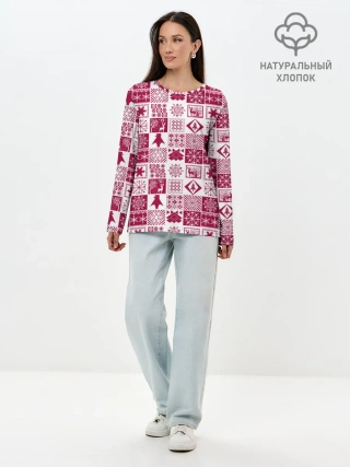 Лонгслив женский. Хлопок / Новогодний рождественский узор