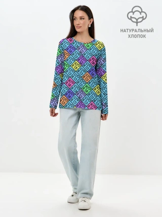 Лонгслив женский. Хлопок / Неоновый яркий абстрактный узо