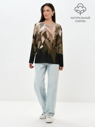 Лонгслив женский. Хлопок / Бежево-коричневая мозаика