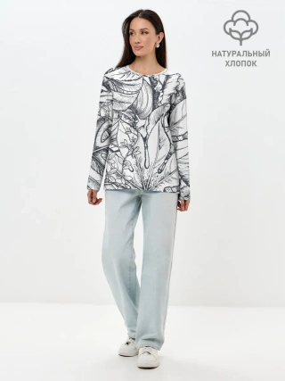 Лонгслив женский. Хлопок / Тропические листья