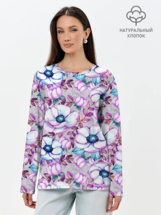 Лонгслив женский. Хлопок / Анемоны - цветочный ковер