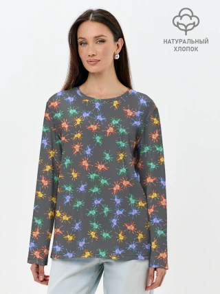 Лонгслив женский. Хлопок / Аксолотль паттерн